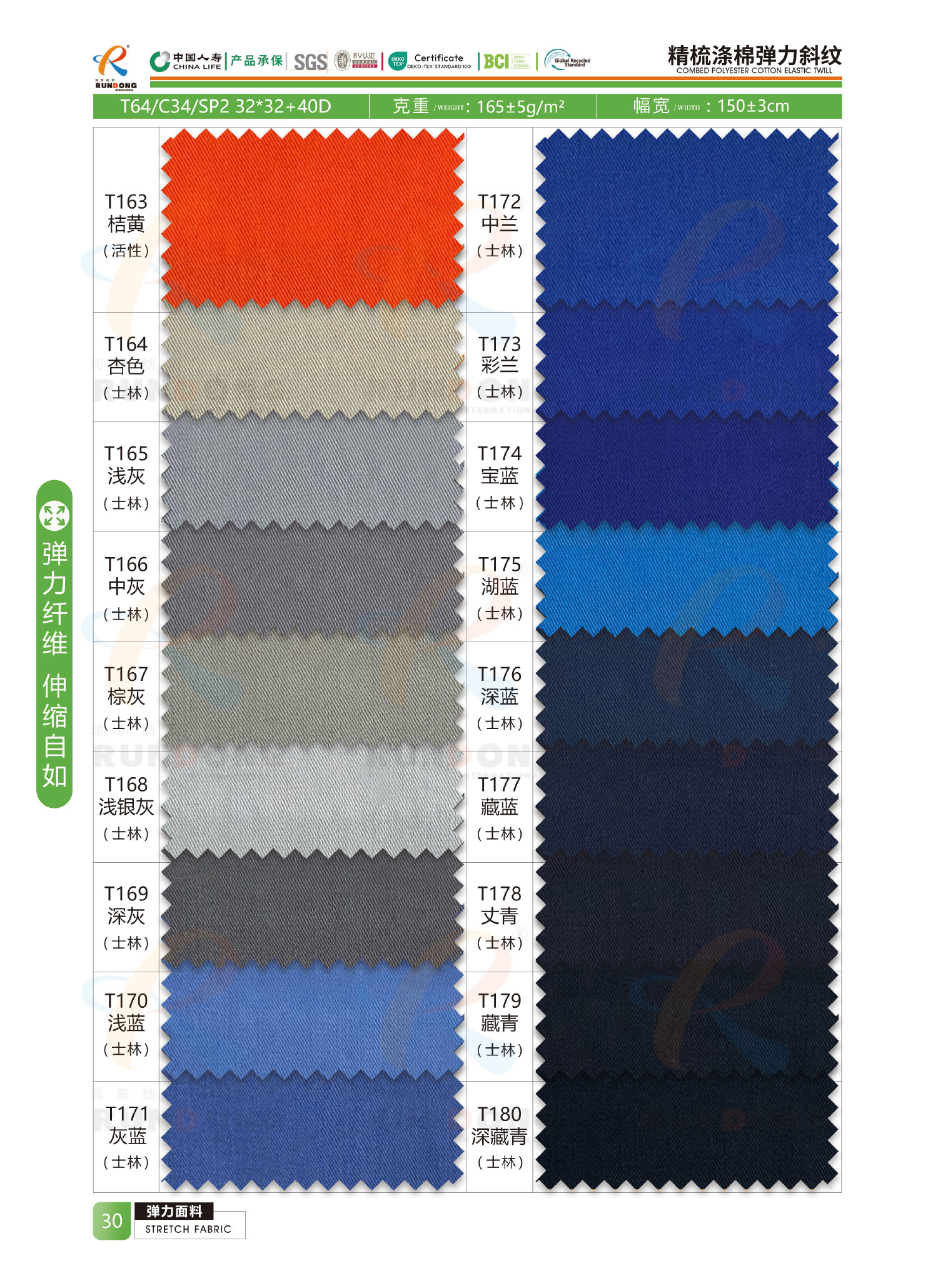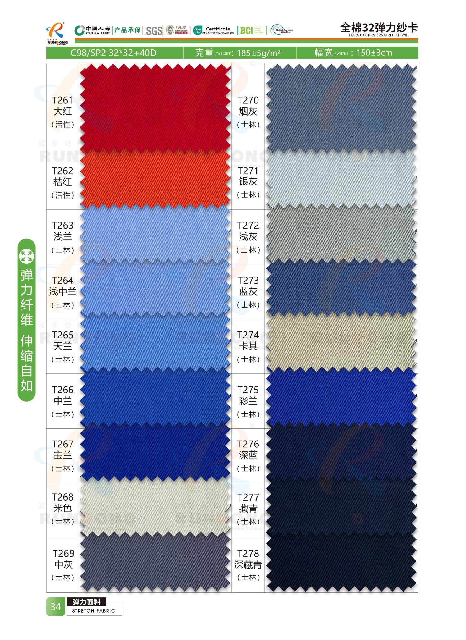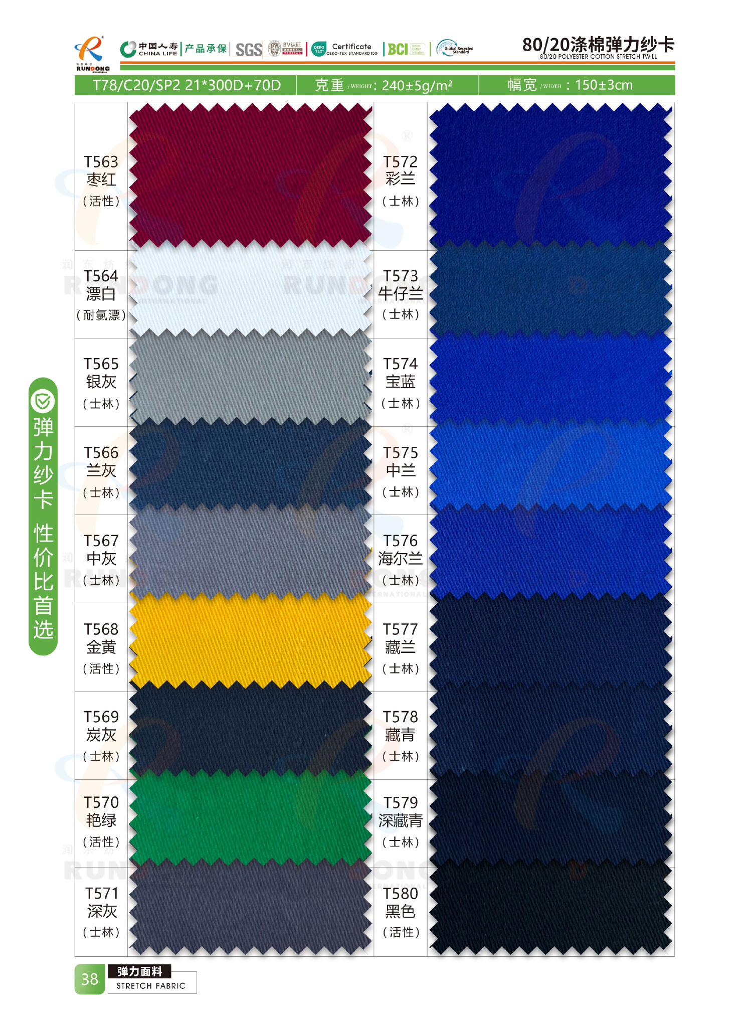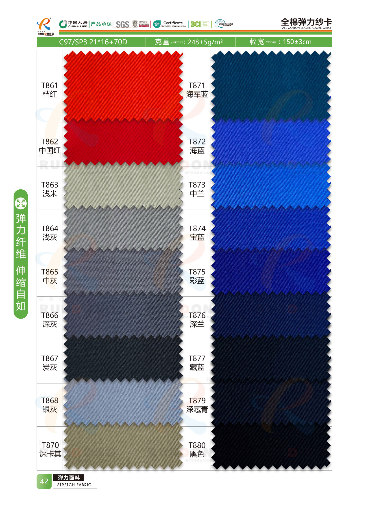 弹力面料色卡