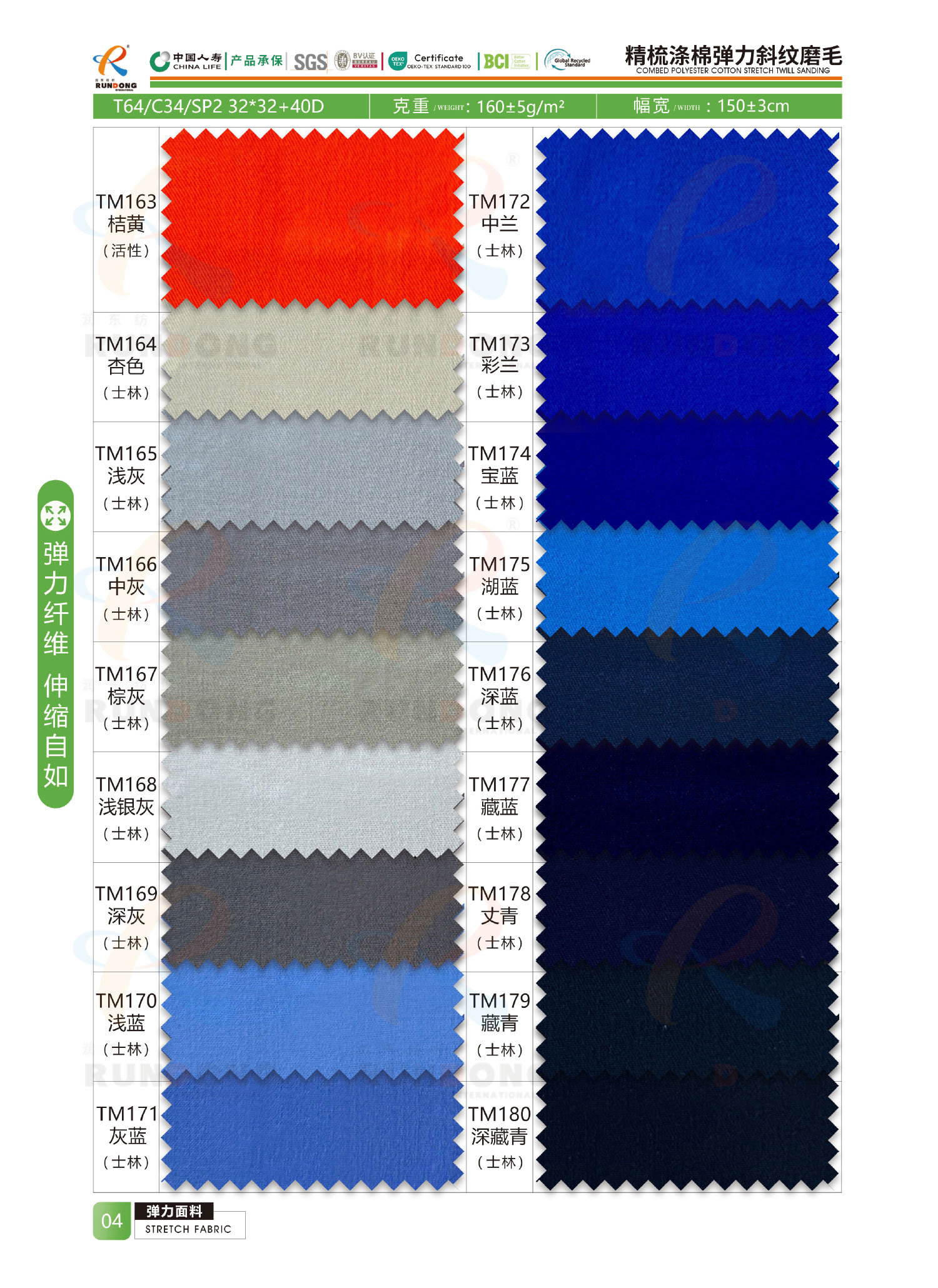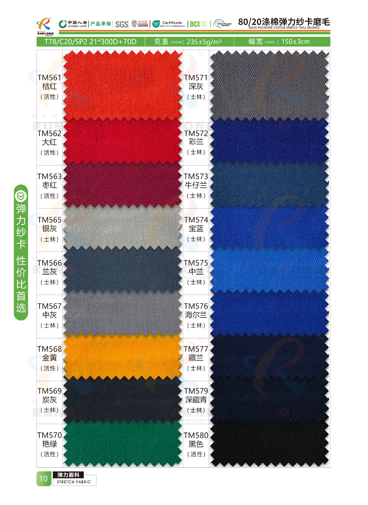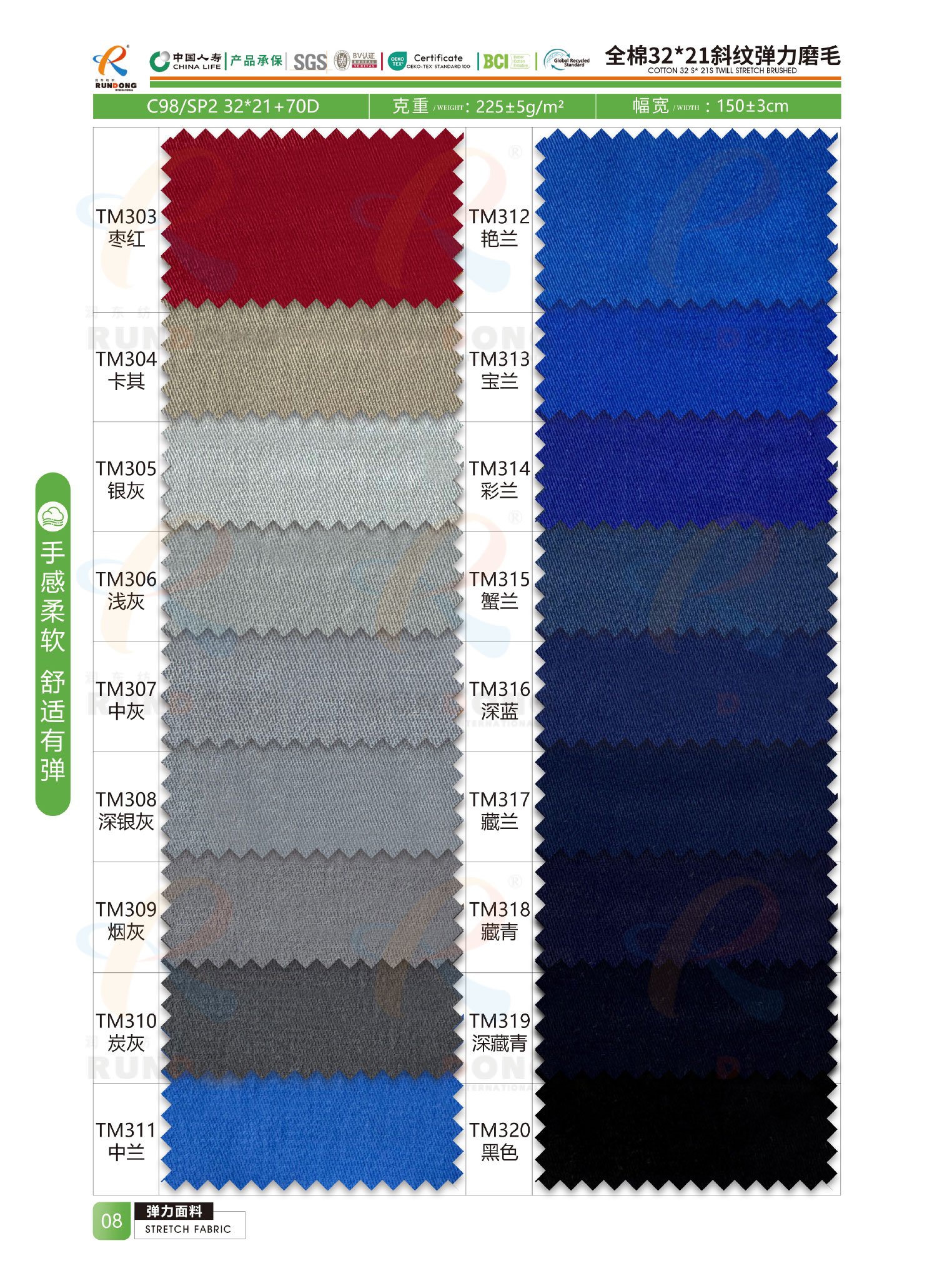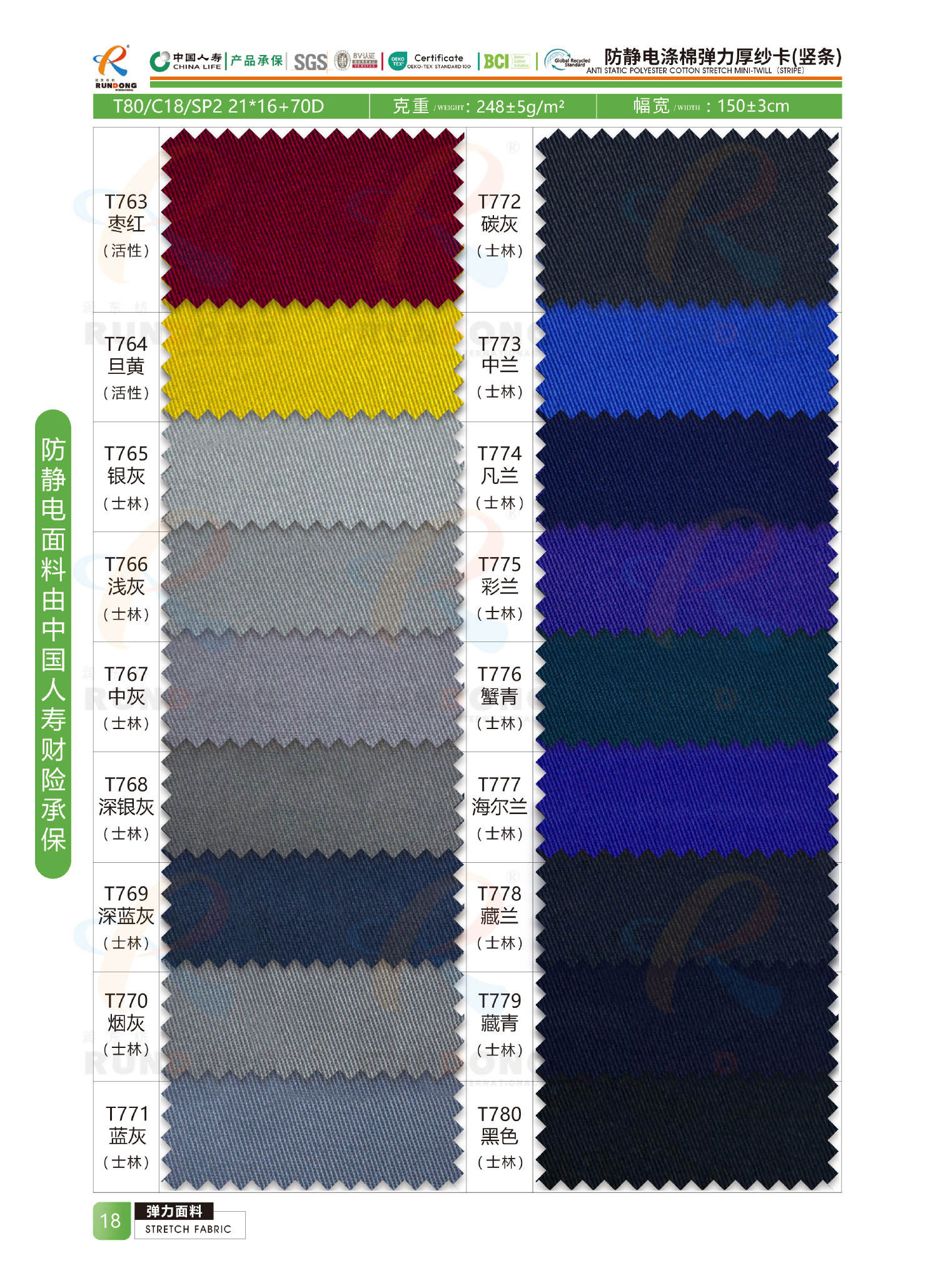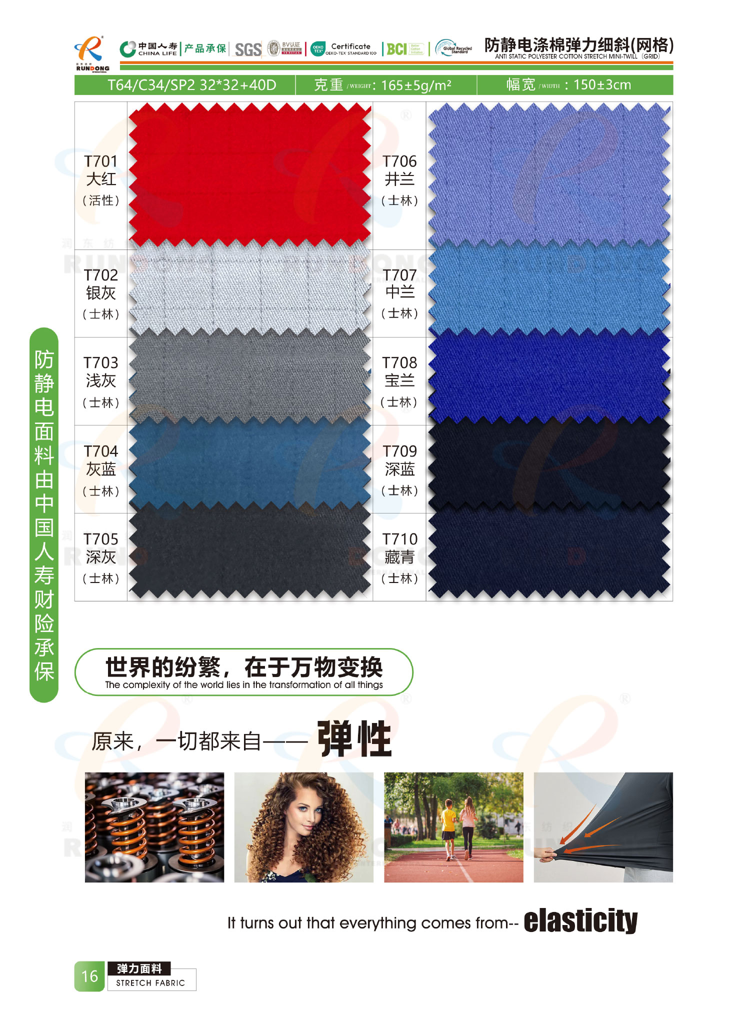 弹力面料色卡