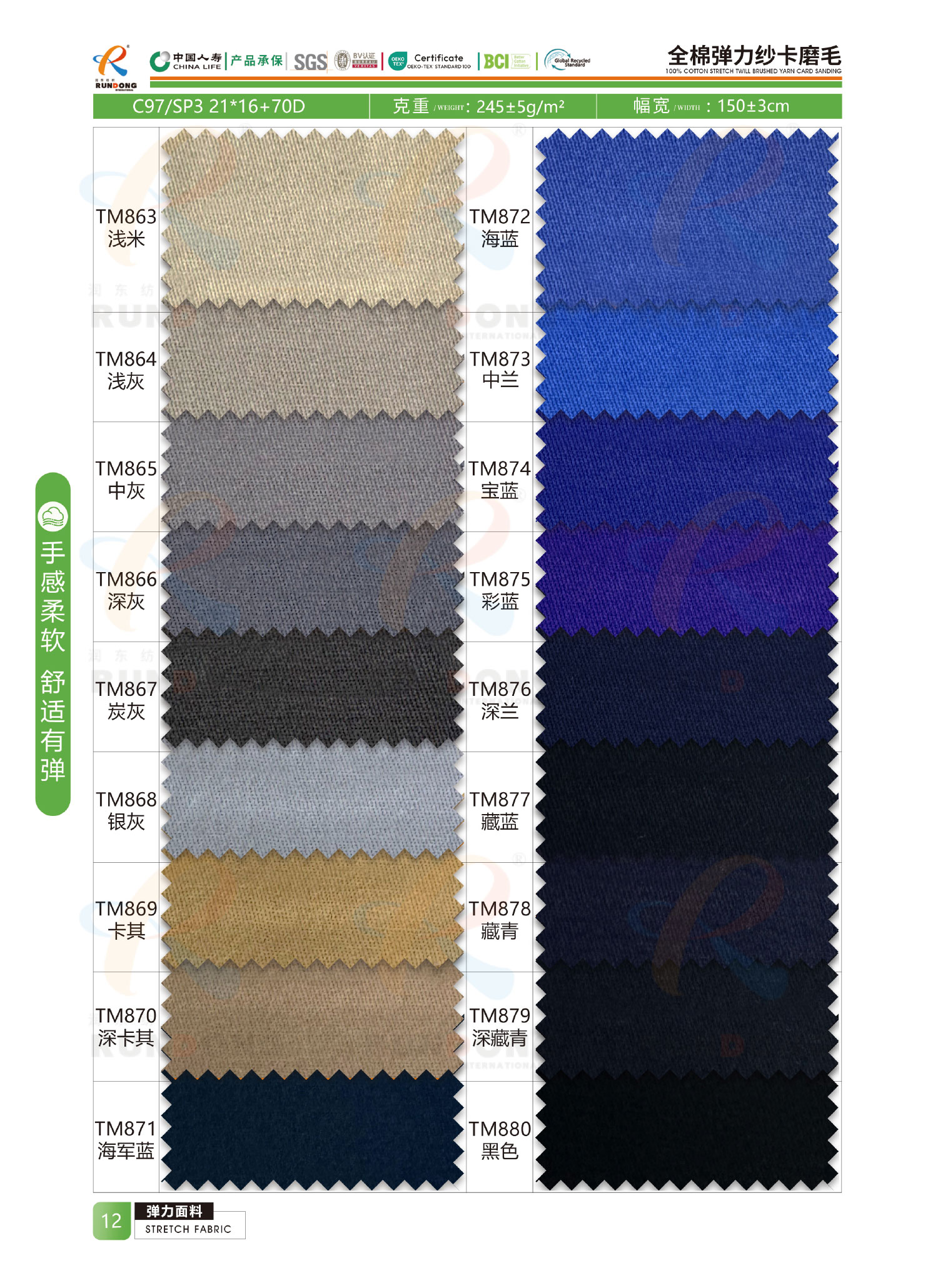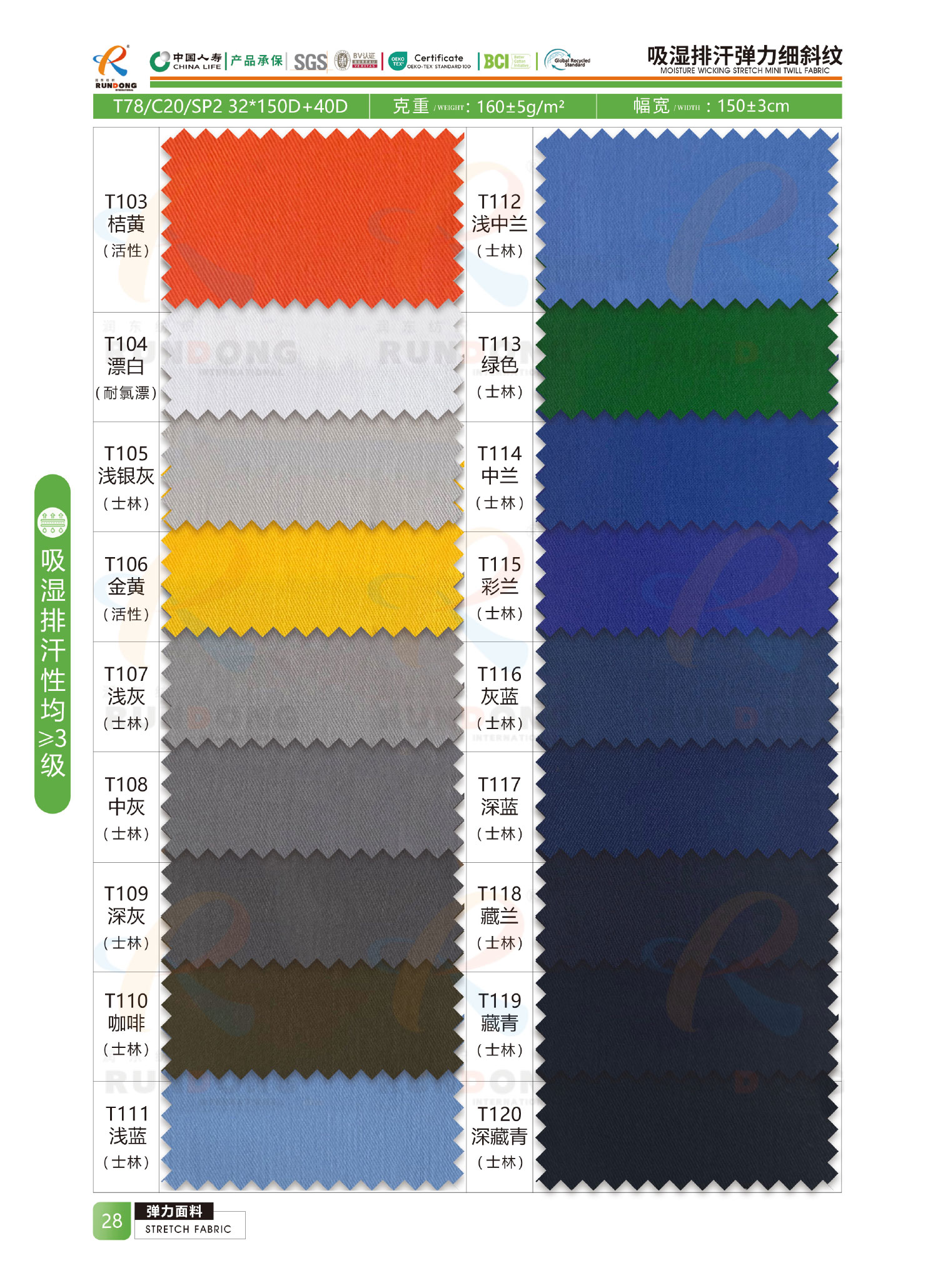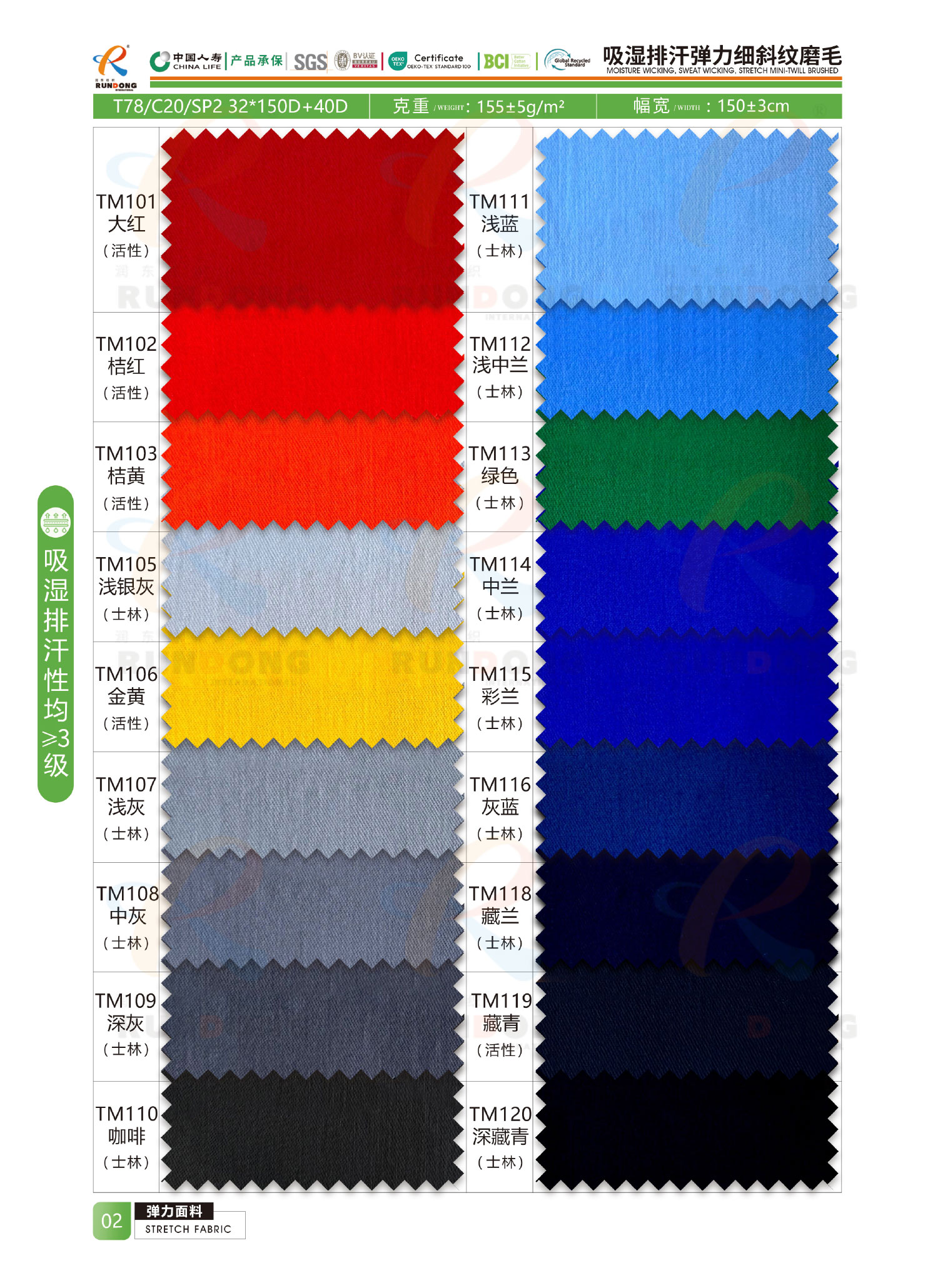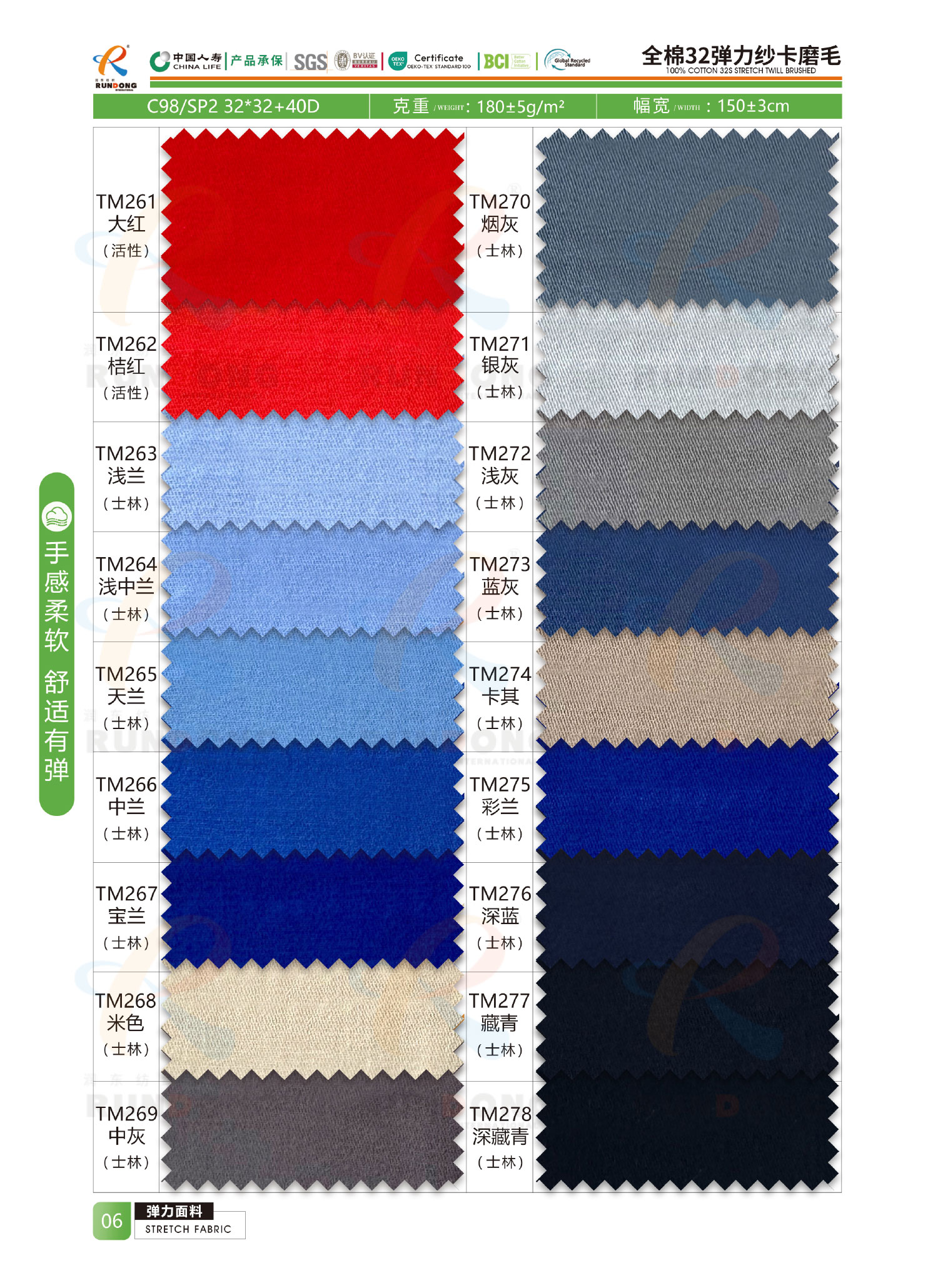 弹力面料色卡