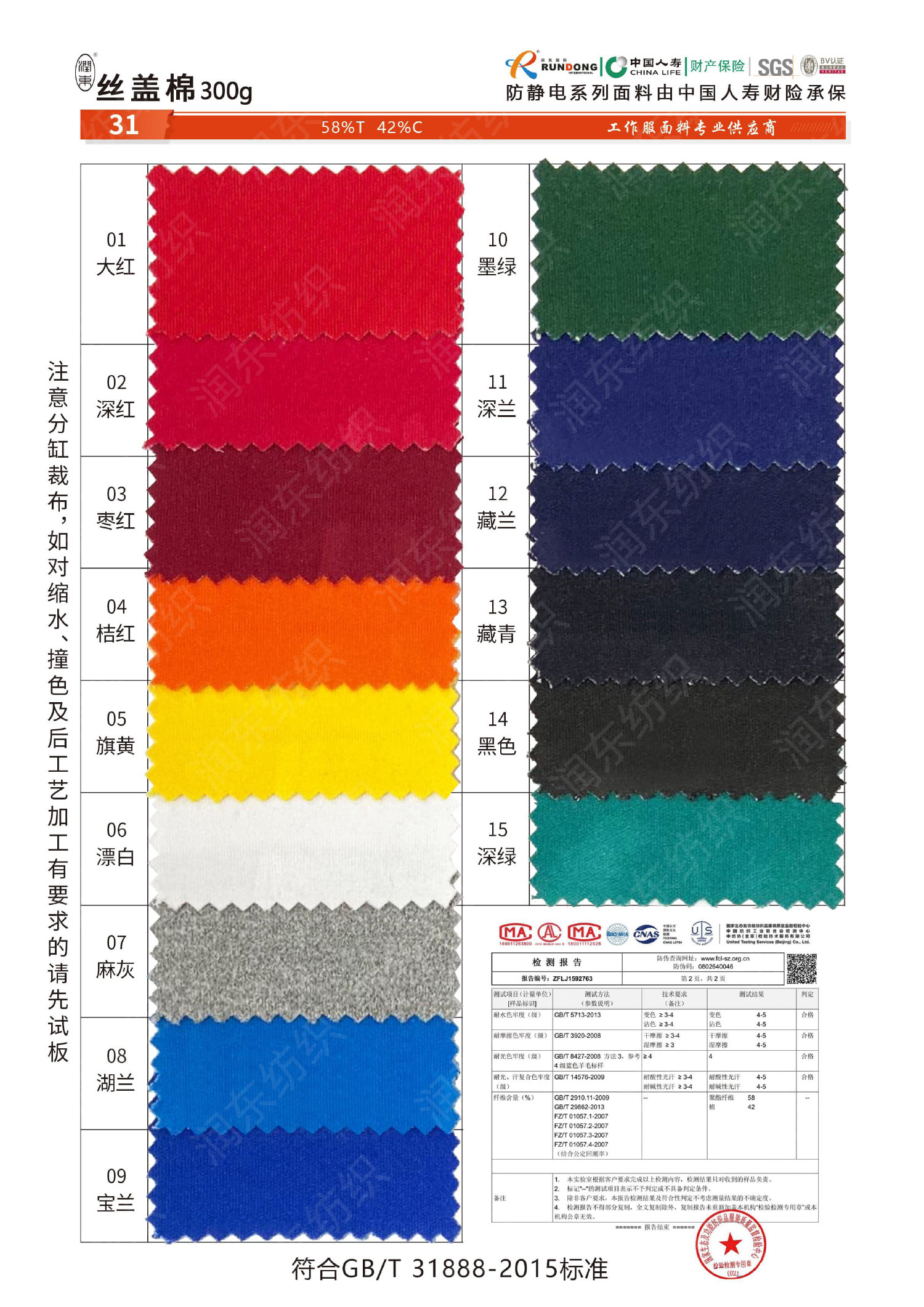 全涤面料色卡