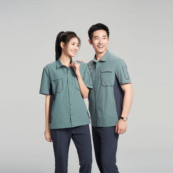 夏季工作服SKY009-竹叶青拼灰蓝