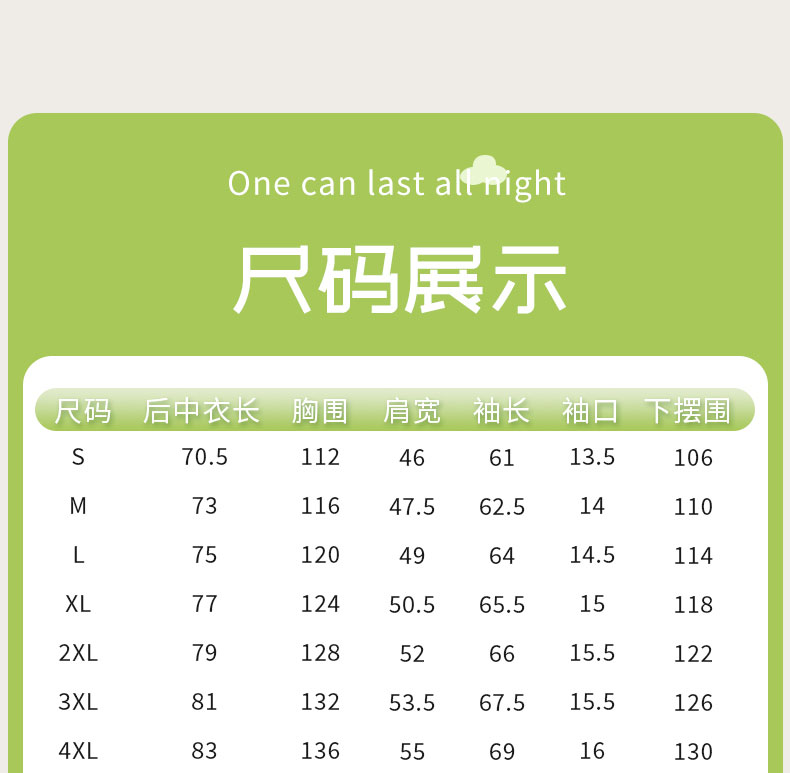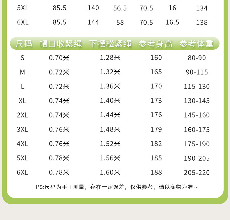 本产品有多个尺码:XS、S、M、L、XL、2XL、3XL、4XL 覆盖99.5%的人群