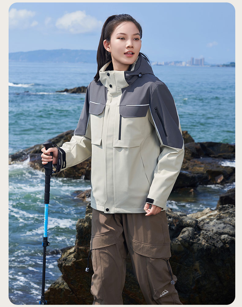 冲锋衣SKY6016-幻影灰拼燕麦卡其