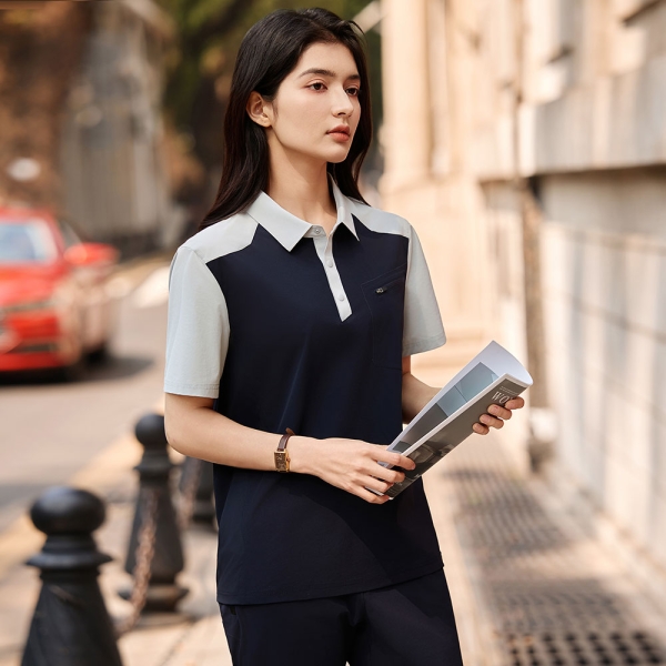 POLO衫定制SKY8090-银灰拼藏蓝