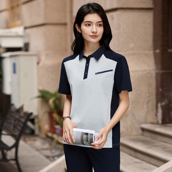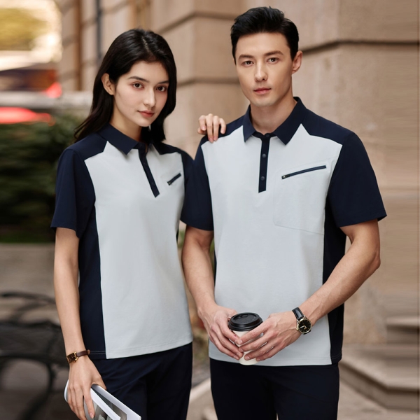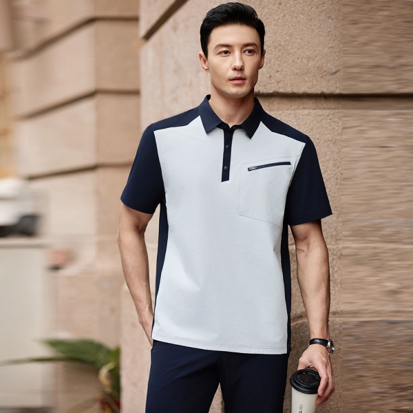 POLO衫定制SKY8090-银灰拼藏蓝