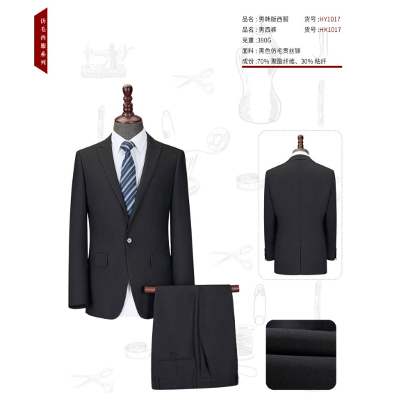 男士黑色仿毛贡丝锦粘纤HY1017A