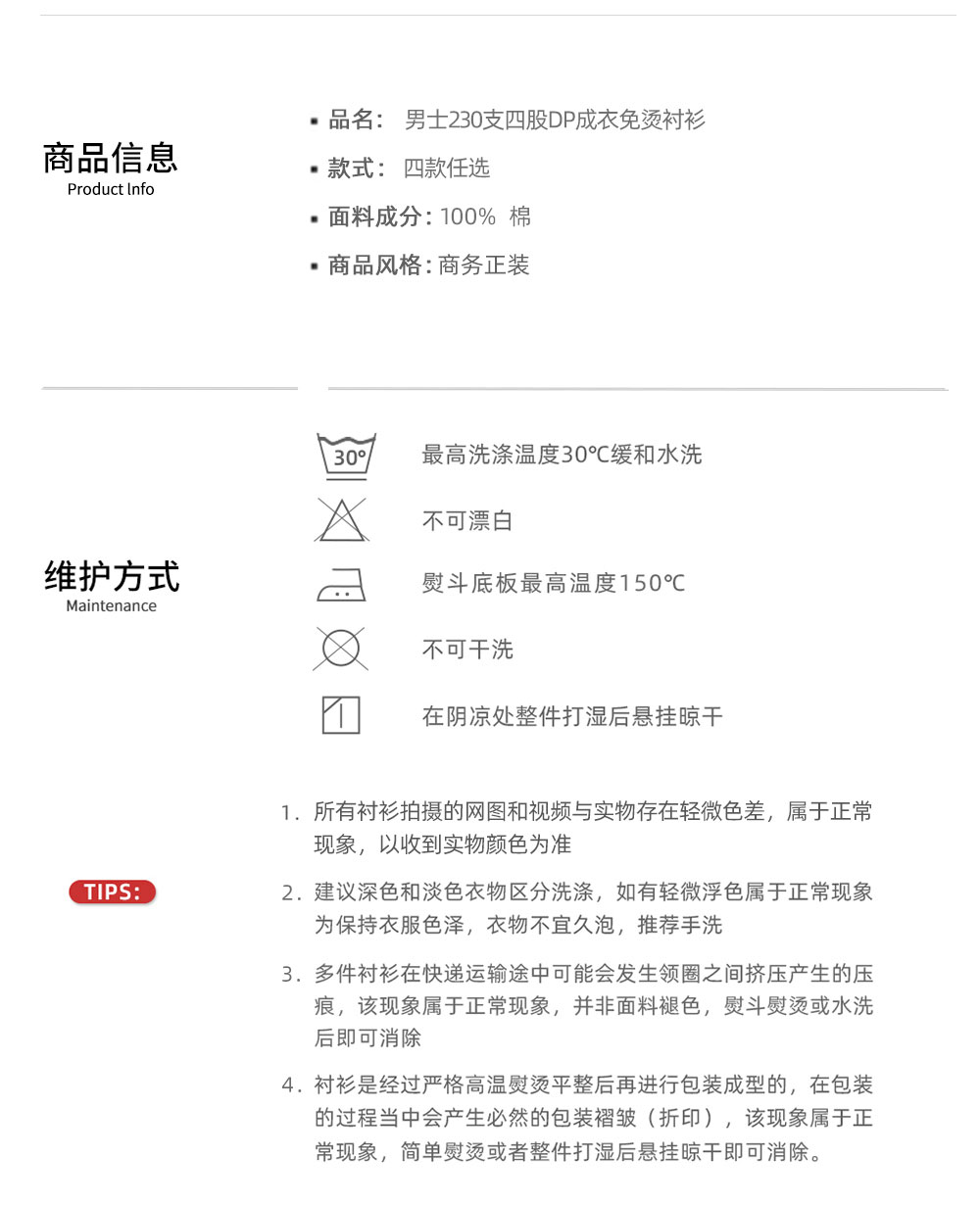 230支全棉DP成衣免烫衬衫