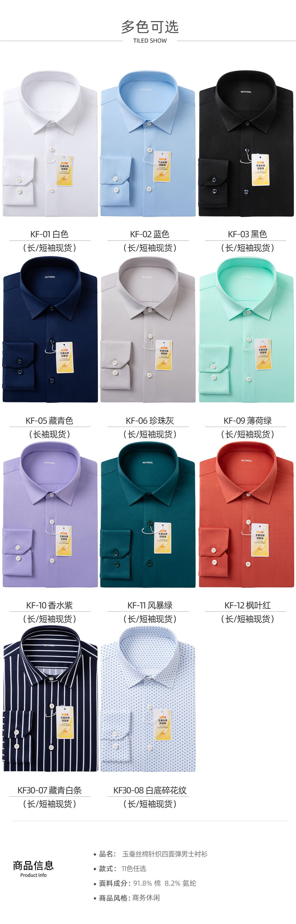100支玉蚕丝棉针织四面弹衬衫